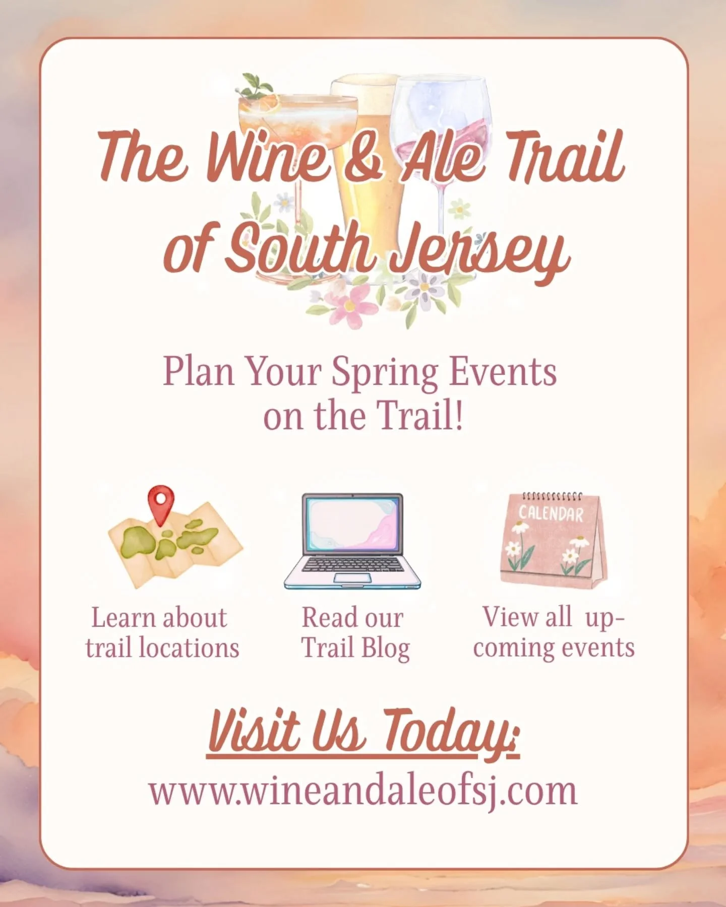 A one-of-a-kind trail combining internationally recognized wine, locally crafted beer, and small batch distilled spirits. With something for everyone, the Wine and Ale Trail of South Jersey takes you from barrel to bottle and back, on a full tasting experience of this emerging region, young in age but established in expression.
